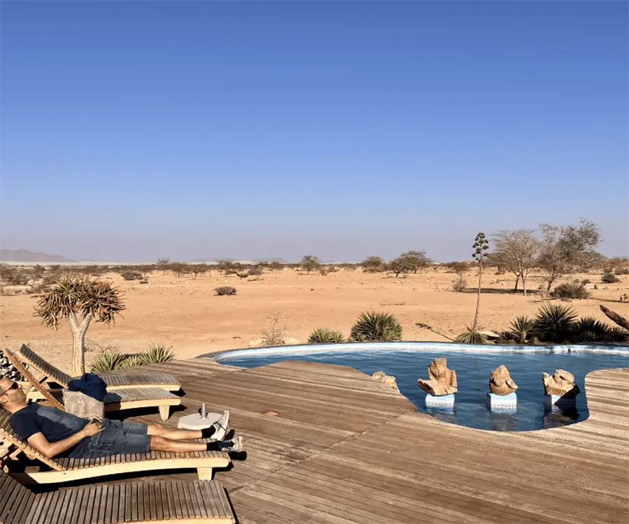 Verscholen tussen de rotsformaties bij Solitaire ligt Solitaire Desert Farm: een kindvriendelijke lodge in Namibië met zwembad, uitzicht over de woestijn en volop mogelijkheden voor safari-avonturen.