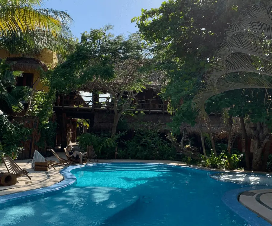 Tussen kleurrijke muren en palmbomen ligt El Pueblito, een kindvriendelijk hotel in Mexico op Isla Holbox. Alles ligt op loopafstand: het strand, het zwembad én leuke plekken om te eten.