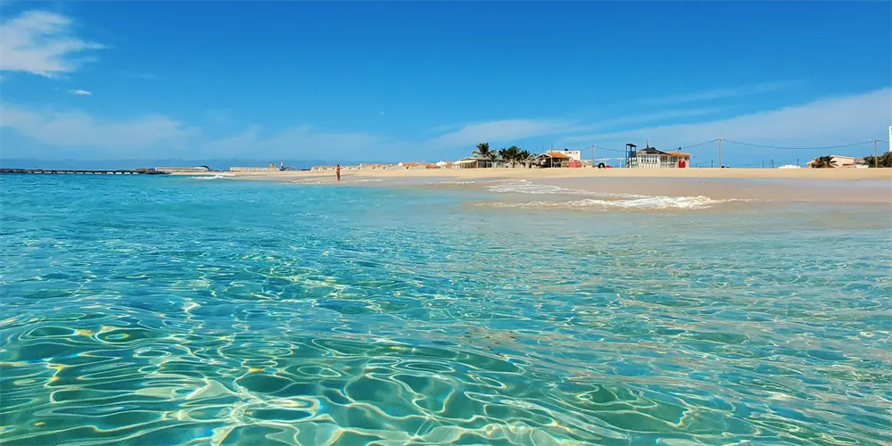 - Zacht zandstrand (bijv. Santa Maria) met kalm water
