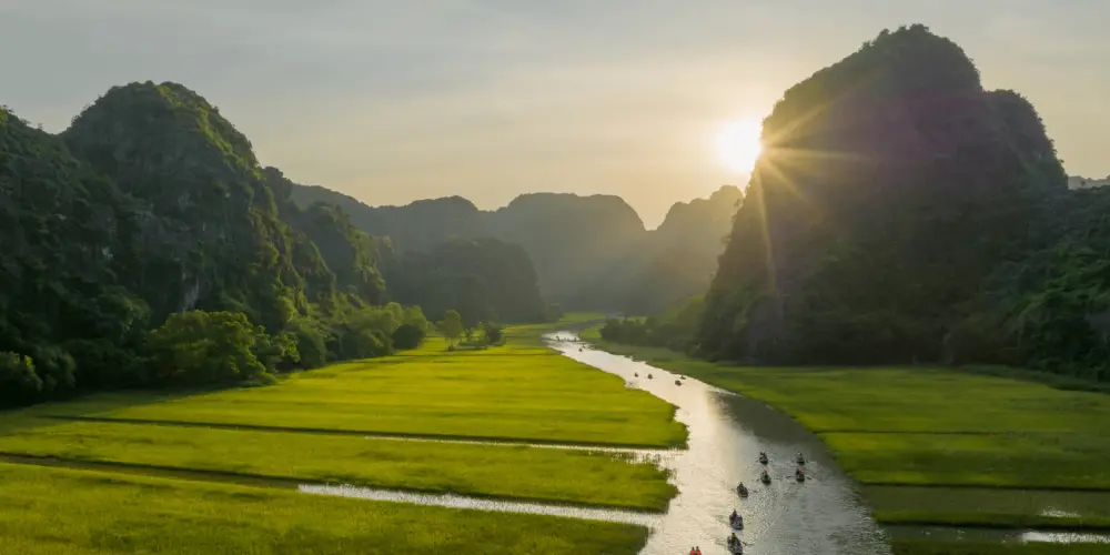 Tam Coc is ook een echte aanrader op tijdens je rondreis in Vietnam met kinderen. Met kalkstenen bergen, uitgestrekte rijstvelden en kleine riviertjes die ertussendoor lopen, kan Tam Coc het best worden ervaren met een roeiboot tocht. Deze tocht is absoluut een unieke ervaring en laat je de mooiste plekken van Vietnam zien.