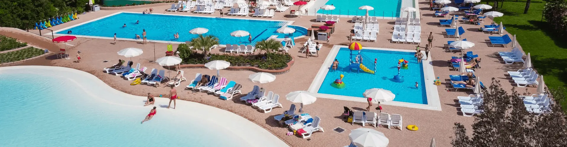 Voor de kleintjes is het zwemparadijs absoluut het hoogtepunt, met vier verschillende zwembaden om uit te kiezen, elk met zijn eigen kenmerken, inclusief glijbanen, sproeiers en zachte, veilige bodems.