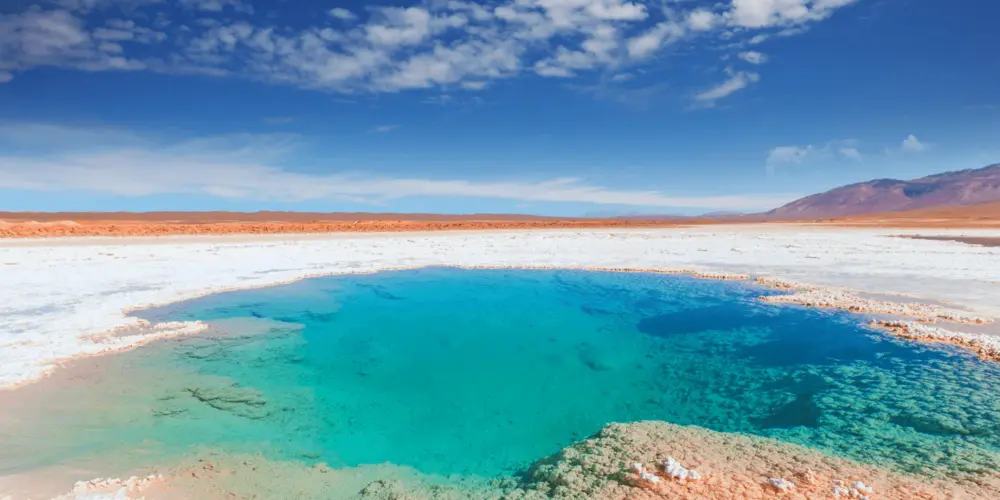 Op slechts een uur rijden van de rode canyons bevindt zich de indrukwekkende zoutvlakte van Argentinië, bekend als Salinas Grandes. Deze zoutvlakte is zeker een van de mooiste plekken van Argentinië. Het is heel fascinerend om over het uitgestrekte zoutoppervlak te wandelen. Tijdens het lopen kun je het zout onder je voeten lichtjes horen kraken, vergelijkbaar met het geluid van het lopen op sneeuw. Het moment dat je voor je uit kijkt en kilometers verderop niets anders ziet dan zout, geeft je het gevoel alsof je op een andere planeet wandelt, wat het een unieke ervaring maakt voor gezinnen die Argentinië met kinderen bezoeken.